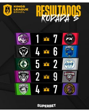 A 5ª rodada da Kings League Brazil foi marcada por placares elásticos e resultados inesperados.