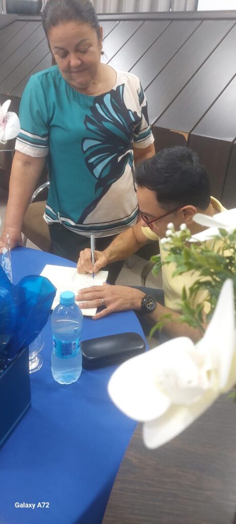 O evento, realizado às 19h, reuniu leitores, amigos e admiradores na Avenida dos Bandeirantes, 2285, no Jardim Sarinha.