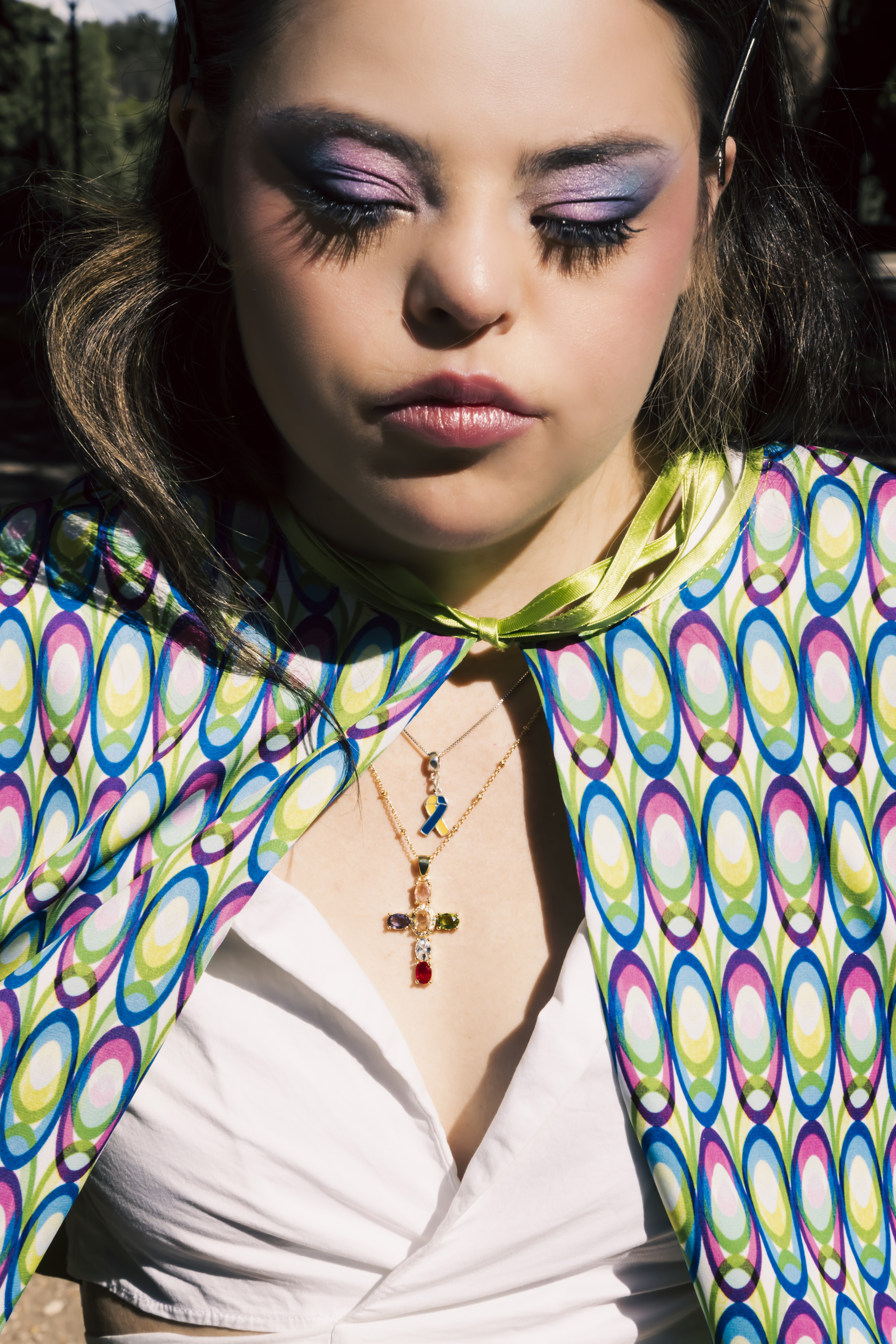 Convidada pelo fotógrafo italiano Emanuele Tetto, criador do projeto Raccontami, a brasileira com síndrome de Down, autismo e deficiência auditiva usou a moda como linguagem para ocupar espaços e transformar sua imagem em narrativa social.